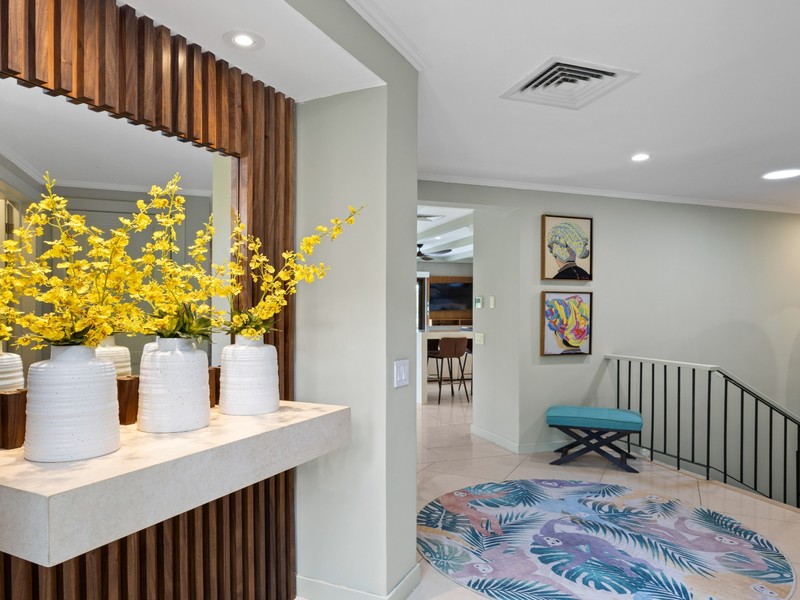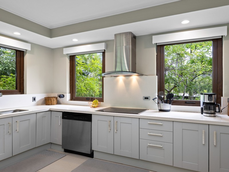 The bright, open-concept interior features upscale finishes, custom woodwork, and energy-efficient LED lighting throughout. The newly remodeled chef’s kitchen includes top-of-the-line appliances, dual sink areas, expansive countertops, and ample cabinetry, ideal for entertaining.