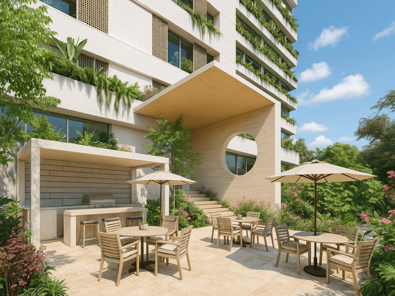 Residents enjoy immediate access to Avenida Escazú, featuring upscale restaurants, boutique shopping, cinemas, fitness studios, medical services, and corporate offices, all within a residential setting anchored by landscaped green spaces and pedestrian pathways.