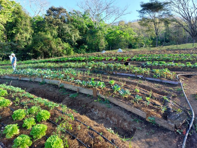 FINCA EL RETORNO spans over 9 hectares (23+ acres) in the upper watershed of the Rio Nosara. The property features an organic vegetable garden of almost an acre, complete with drip irrigation and a creek-fed water pump and tank for use in the dry season. Seven hectares are presently in excellent pasture, on which horses and cattle can thrive. Other options for the land include planting a variety of fruit trees and coffee, or allowing the natural forest to regenerate on part or most of the property, providing a significant contribution to the conservation of the watershed and biodiversity. The property borders a private nature reserve, and in its upper portion has spectacular views of the nearby Montealto Nature Reserve, established by the community decades ago to guarantee the health of the river, and which boasts excellent hiking and birding. It’s also a short walk from the waterfall and swimming hole on the Rio Nosara that gives the community of Pilangosta its name.