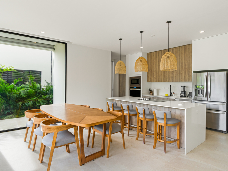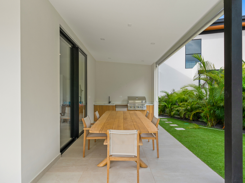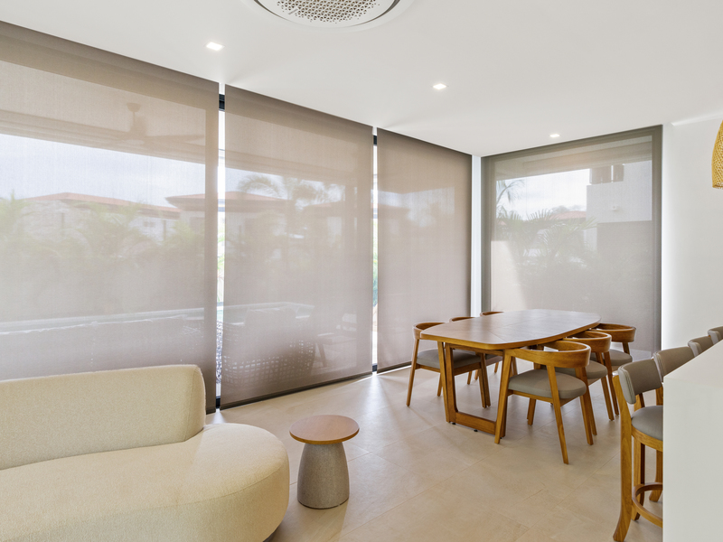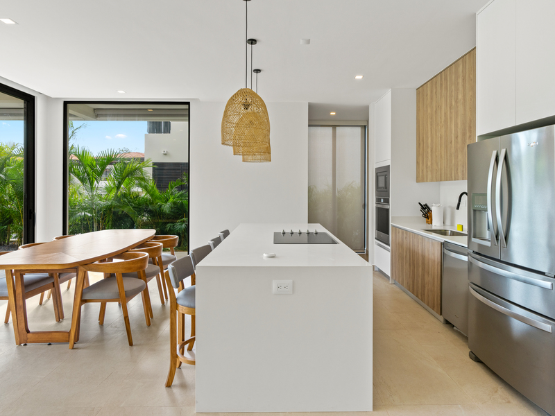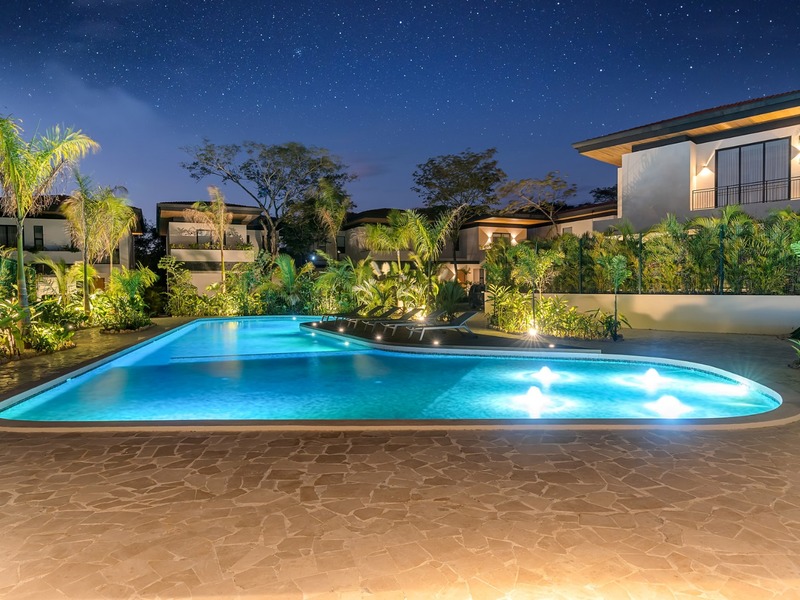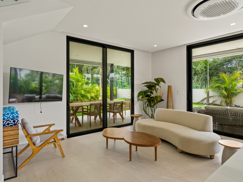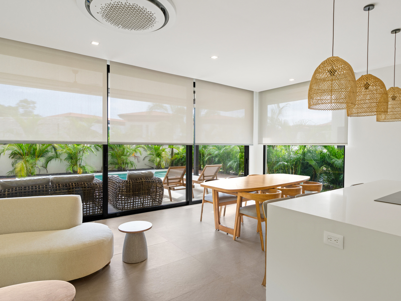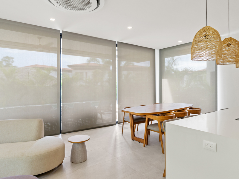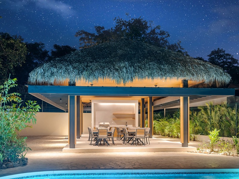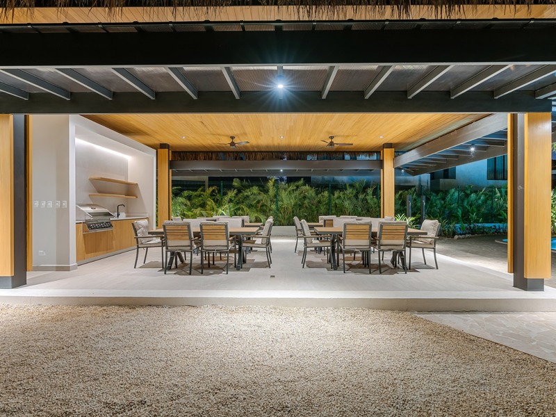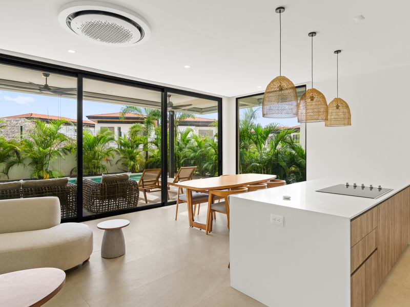 Welcome to Casa Palms and Putts, a luxurious turn-key villa in the exclusive Bosques de Pinilla community, Hacienda Pinilla. Built in 2024, this modern two-level home offers the perfect combination of sophistication, comfort, and tropical living. Expansive floor-to-ceiling glass doors open to a spacious living room, gourmet kitchen, dining area, and covered terrace, seamlessly blending indoor and outdoor spaces for effortless entertaining and relaxation.