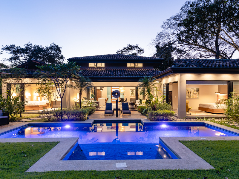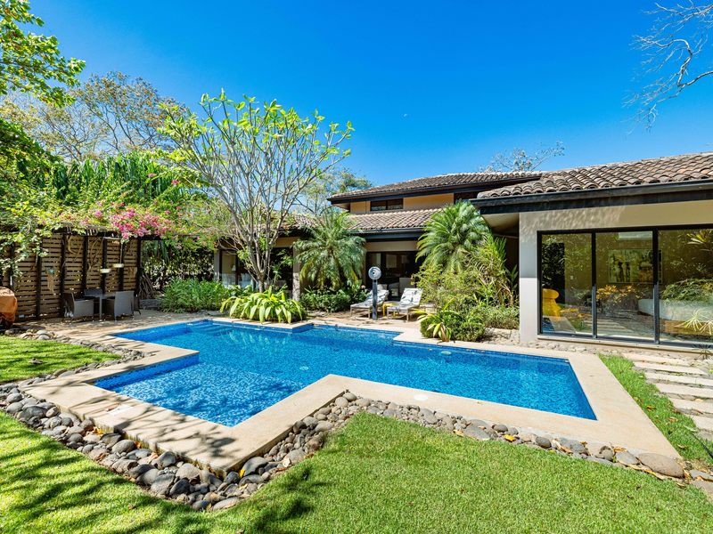 Introducing Casa Milagro, a stunning 4-bedroom, 4-bathroom designer home that redefines tropical elegance. Nestled within the prestigious beach resort of Hacienda Pinilla, this exquisite residence sits on a generous 2,000 m² lot and offers 300 m² of refined construction. Surrounded by mature trees and lush greenery, the home blends perfectly with Guanacaste’s natural beauty, creating a private sanctuary where comfort meets sophistication.