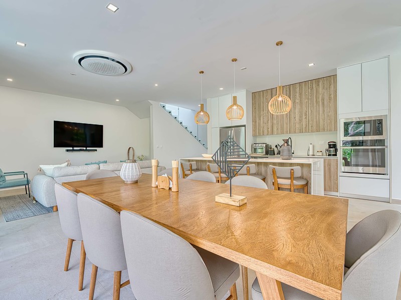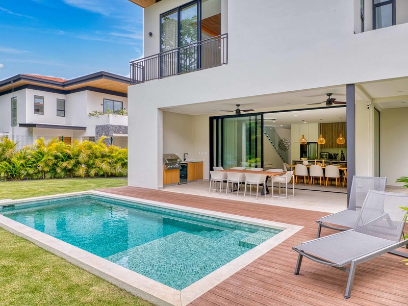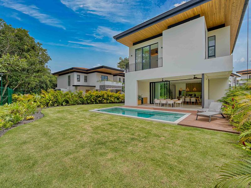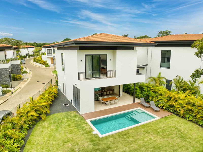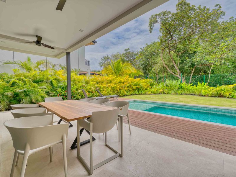 Experience luxury, comfort, and privacy in this fully furnished 4-bedroom, 4.5-bathroom corner home at Bosques De Pinilla, one of Hacienda Pinilla’s most exclusive communities. Just a short drive from the beach club and local amenities, this home offers the perfect combination of elegance and convenience. The ground floor features a guest bedroom, laundry room, and an open-concept living, dining, and kitchen area, with large sliding doors that fill the space with natural light and invite the gentle Guanacaste breezes.