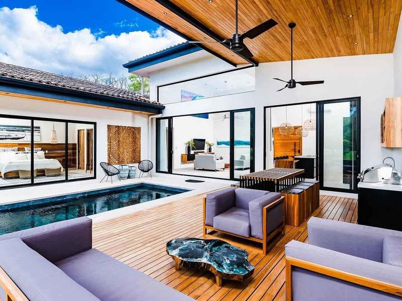 Casa Amici is a refined luxury single-level contemporary residence built in 2022, ideally located just steps from the beach in the exclusive Las Golondrinas community within Hacienda Pinilla. Designed for elegant coastal living, this exceptional home offers 4 spacious bedrooms and 4 full bathrooms across 3,229 sq ft of thoughtfully designed living space, set on a generous 1,291.69 sq m lot. The layout prioritizes privacy, comfort, and a seamless connection between indoor and outdoor spaces, creating a relaxed yet sophisticated coastal atmosphere.