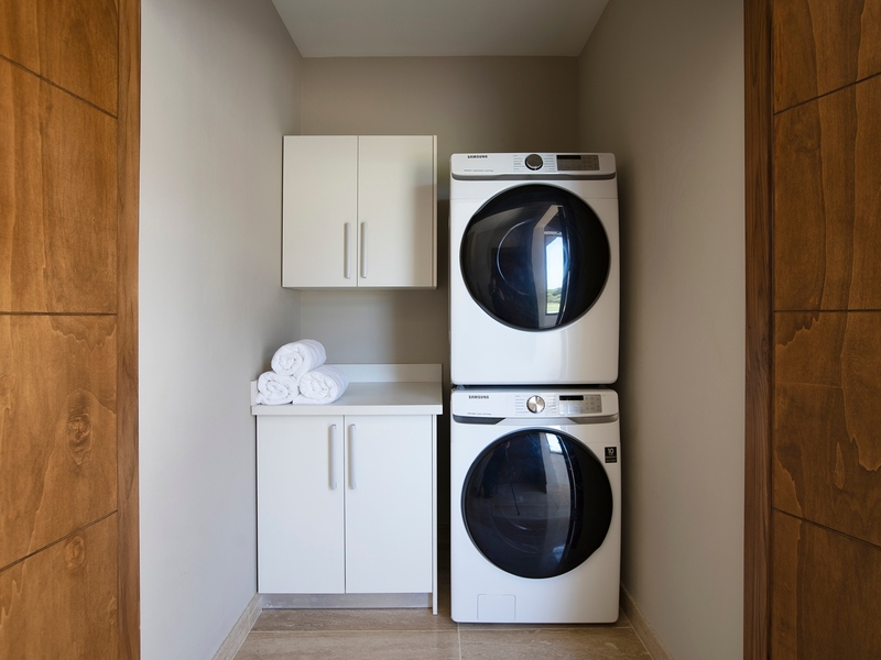 Outdoors, enjoy a saltwater swimming pool and heated spa, perfect for relaxation in the tropical climate. Additional conveniences include a main laundry and service area, a secondary laundry space, and a central HVAC system equipped with Nest thermostats for optimal comfort year-round.