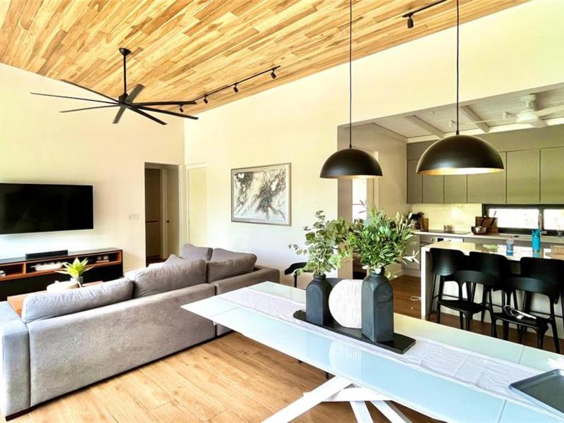 Just steps away, a separate guest house adds a layer of flexibility and privacy rarely found. Ideal for extended stays, remote work, or hosting guests, it features a kitchenette/office area, full bathroom, and sleeping space for up to four. The garage area offers two covered parking spaces, room for up to seven vehicles, air-conditioned storage rooms, and even a full bathroom—thoughtfully designed for both convenience and lifestyle.