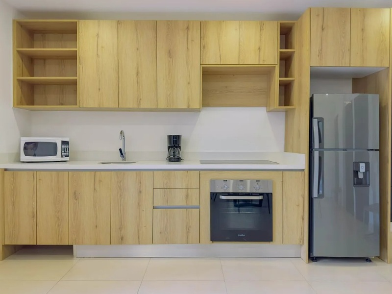 Second Floor – 1 Bedroom, 1 Bathroom: This level has a separate entrance and features a cozy living and kitchen area fully equipped with modern appliances, quartz countertops, and MDF cabinets. Large windows allow natural light, and a small balcony provides a private outdoor retreat.