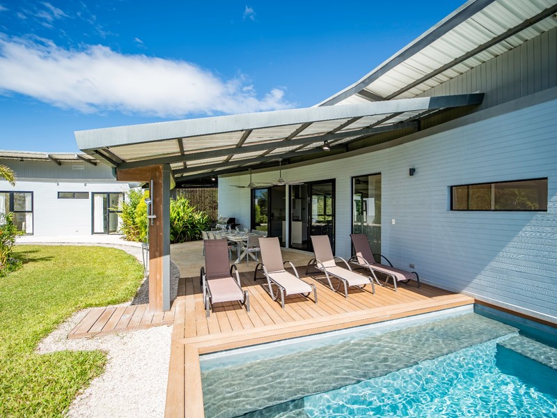 Infinity Pool & Deck: Relax in the salt-treated infinity pool, surrounded by a premium wood deck, and enjoy the soothing ocean breeze. An outdoor shower adds to the convenience.