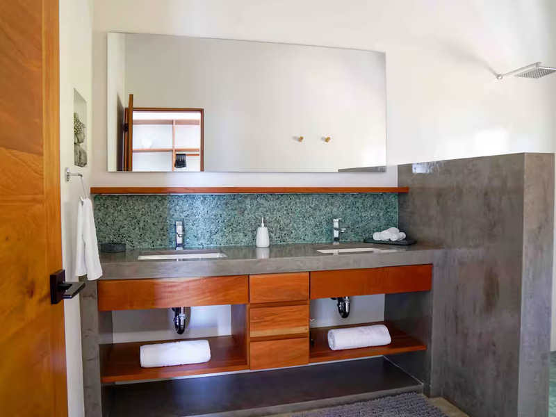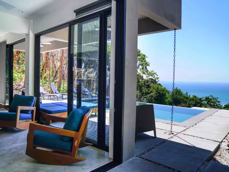 This stunning two-bedroom, two-bathroom ocean-view home in Santa Teresa offers the perfect blend of comfort, privacy, and potential. Nestled in a peaceful setting, the property feels secluded yet is just minutes from town and the beach—giving you the best of both worlds. It features two spacious bedrooms with king-size beds and en suite bathrooms, along with an open-concept kitchen and living area that flows seamlessly out to a beautiful pool and outdoor lounge space. The home is perfectly suited for full-time living or use as a vacation rental. It’s already generating consistent income on Airbnb, giving you the opportunity to start earning from day one.