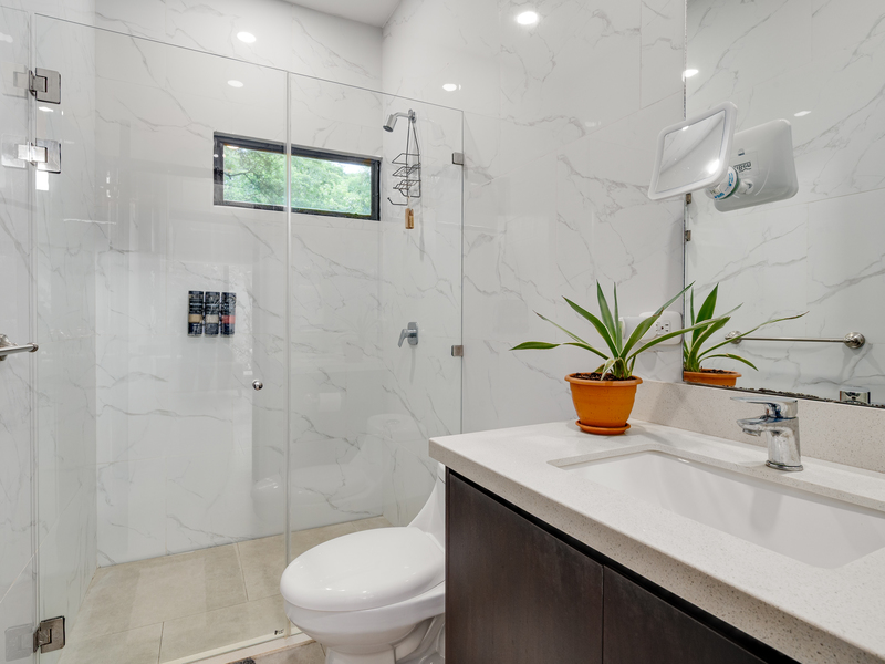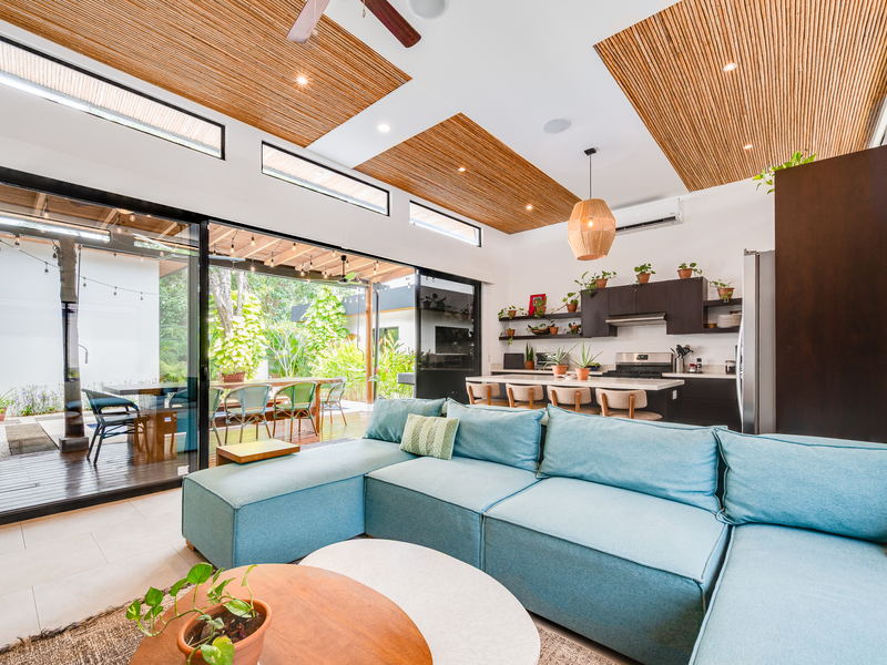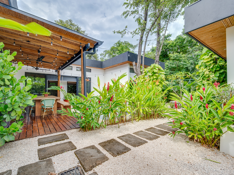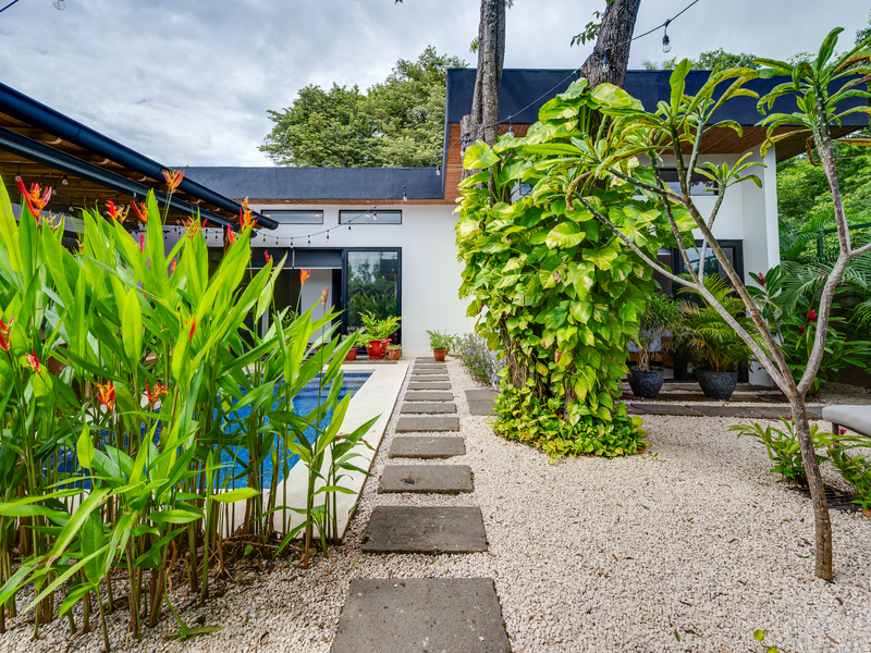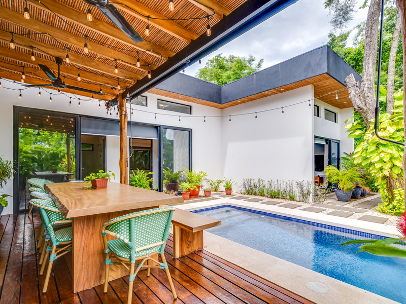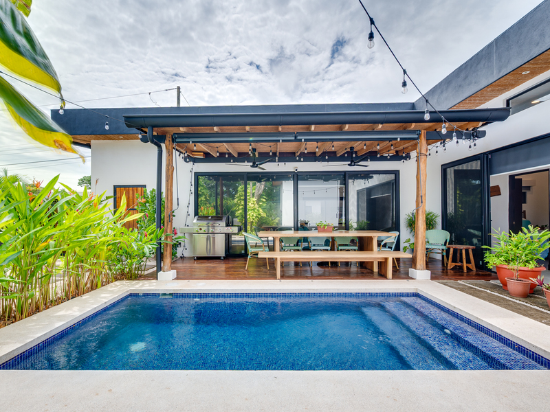 This 3 year old home has been impeccably maintained and never rented out. The distribution is great, around a swimming pool with lush vegetation, and looking out over mature trees. The teak deck has been recently treated and is in great condition. The location is perfect- just far enough out from Tamarindo to be peaceful and surrounded by nature. But not forgetting that just a short car ride (or golf cart ride!) away are the beautiful sandy beaches of Tamarindo, and all the restaurants and shops. Owner financing available.