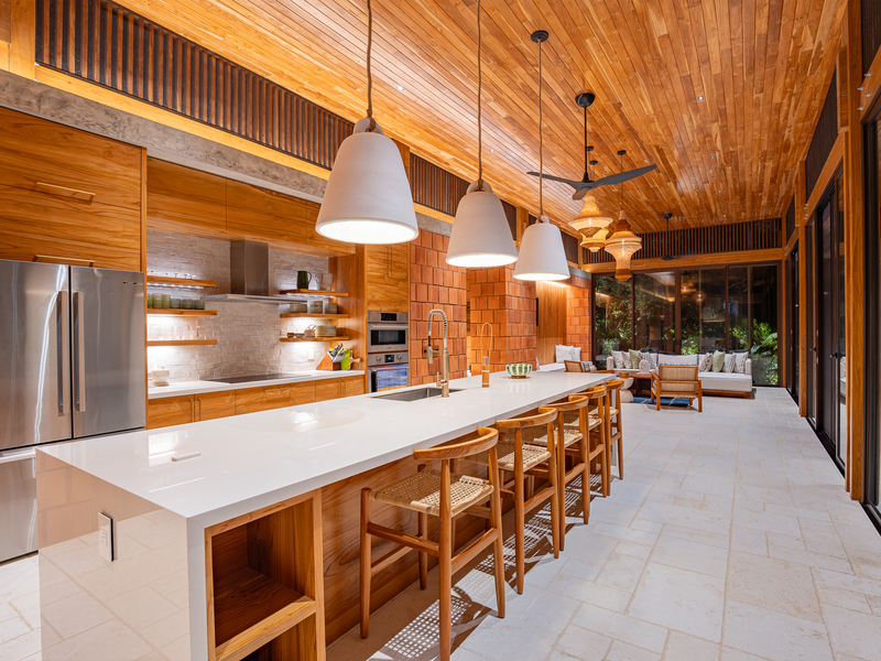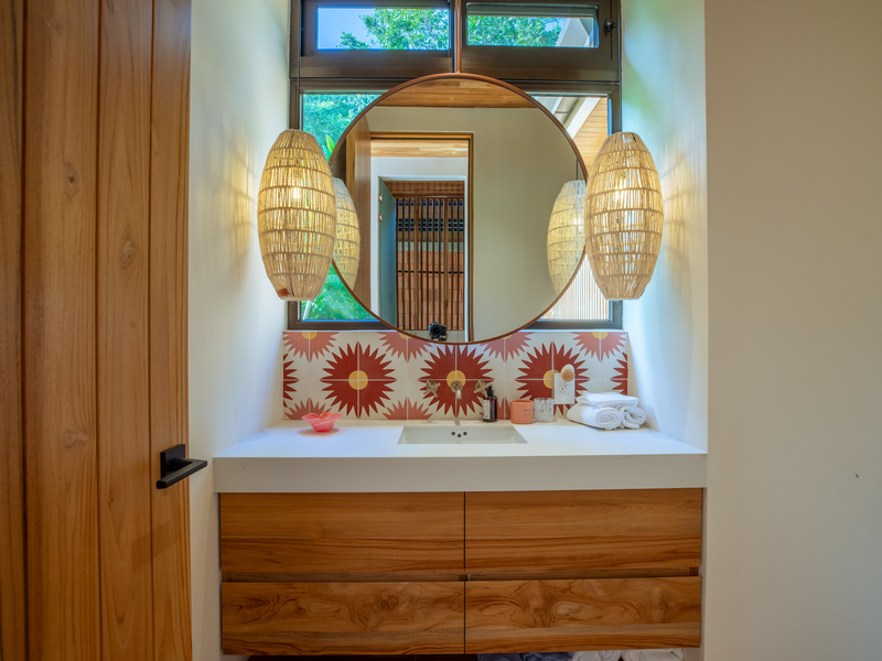 Come experience what it feels like when architecture works with nature instead of against it. Let Casa Dos Playas hold you, restore you, and help you remember what vacation is really supposed to feel like. A Home That Breathes With Nature You'll immediately notice how different this feels. The thick clay brick walls, crafted from local materials using traditional methods, create a natural cooling system that keeps you comfortable without air conditioning. These aren't just walls; they're living surfaces that regulate temperature and humidity, giving you that perfect climate you've been dreaming of for your Costa Rica getaway. While all on one floor, the home floats gently above the earth, letting air flow freely beneath while you move through three distinct areas connected by breezy covered walkways. As you walk from the social spaces to your bedroom, you're never fully indoors or outdoors…you're in that perfect in-between space where tropical breezes carry the scents of the garden and the sound of the nearby surf.