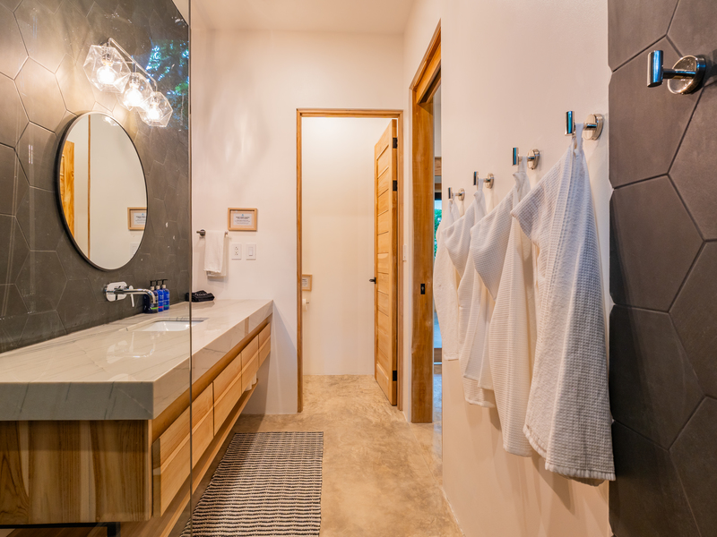 Guests have exclusive use of the entire villa, including the saltwater pool, jacuzzi, ocean-view yoga deck, fully stocked chef’s kitchen, indoor/outdoor living areas, two-car garage, and laundry facilities. While the villa can be combined with Casita Back Door or Casa Rocky Point for larger groups, each property has its own private entrance to ensure a peaceful and independent stay.