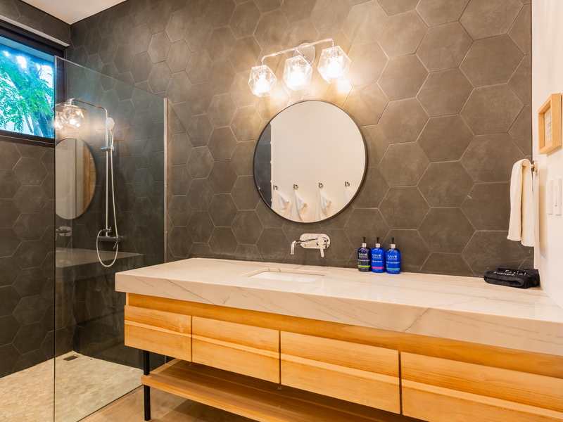 Spend mornings stretching on the ocean-view yoga deck, outfitted to accommodate up to 20 people. Cool off in the private saltwater pool, relax in the jacuzzi, and refresh in the outdoor shower after beach time. The fully equipped chef’s kitchen and seamless indoor-outdoor living areas make cooking, gathering, and entertaining effortless.