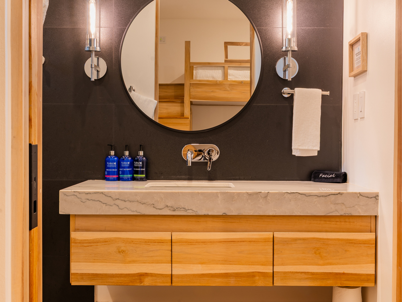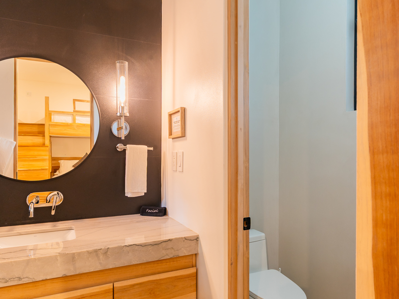 Each bedroom offers generous space, a private bathroom, and adjustable bed setups—opt for one King or two Twin XL beds in every suite. Additional sleeping options include a Queen pull-out sofa on the upper level and a custom bunk room with two Queen beds and two Twins, allowing the home to host up to 14 guests with ease.
