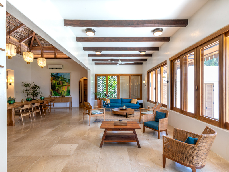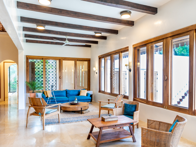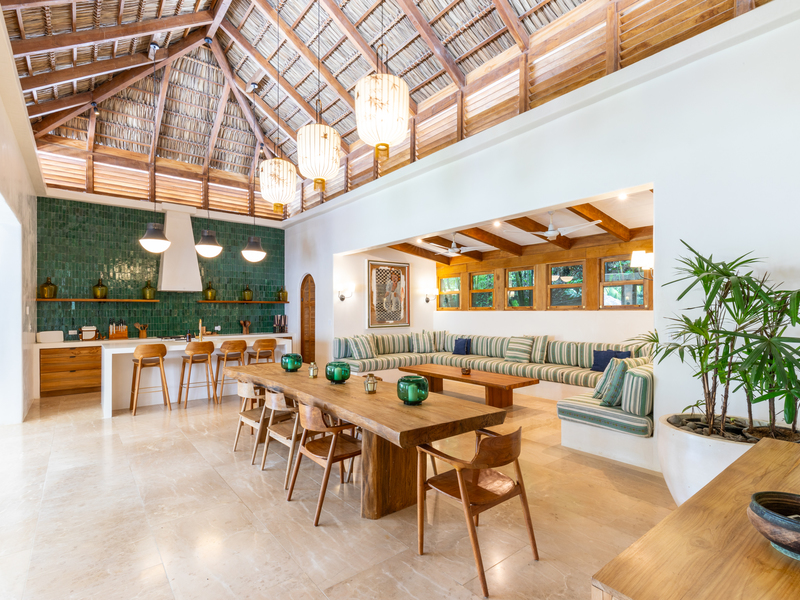 The heart of this remarkable home is its expansive living area, designed to embrace the indoor-outdoor lifestyle. Large windows invite an abundance of natural light, creating a warm and inviting atmosphere. The seamless flow between indoor and outdoor spaces allows you to bask in the tropical ambiance and revel in the idyllic lifestyle that Guiones offers.