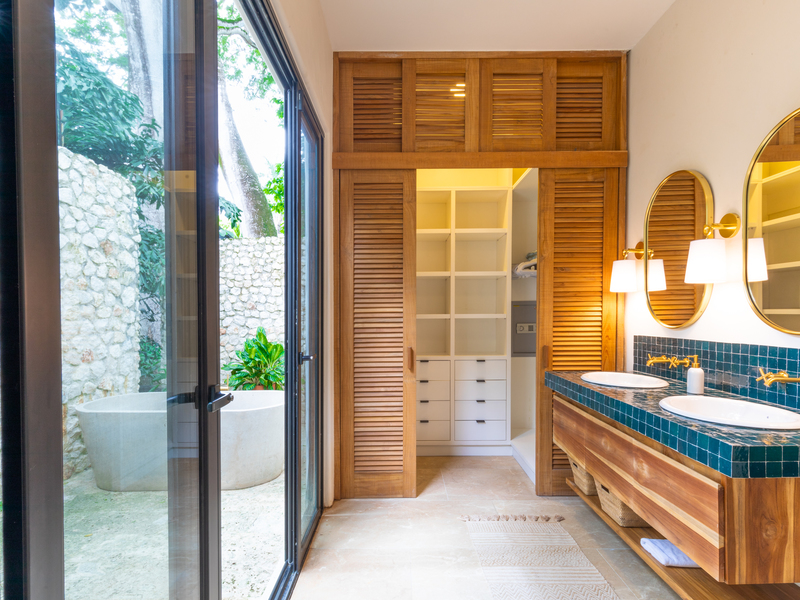 The two primary suites in Utopia Escapista are a true sanctuary, featuring ensuite bathrooms with outdoor showers and gorgeous oversized bathtubs. These private retreats allow you to immerse yourself in the surrounding natural beauty, indulging in moments of relaxation and tranquility. Two additional bedrooms with a Jack and Jill bathroom provide comfortable accommodations for family and guests.