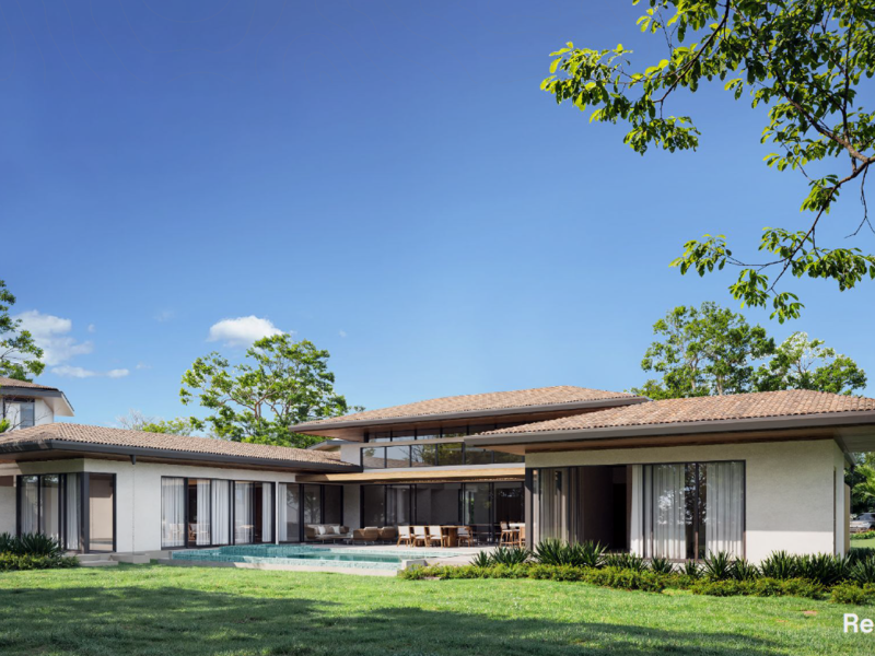 Casa del León presents a brand-new tropical modern luxury residence, thoughtfully designed on a single level to emphasize comfort, accessibility, and effortless indoor–outdoor living. Set on a generous 2,465 m² lot within the prestigious Las Golondrinas enclave at Hacienda Pinilla, this exceptional home spans 5,584 square feet and is scheduled for completion in July 2026.