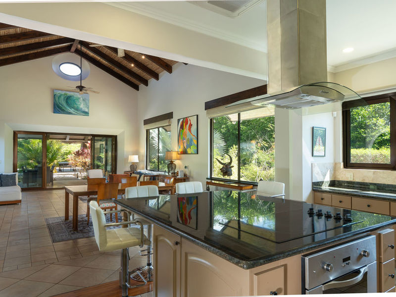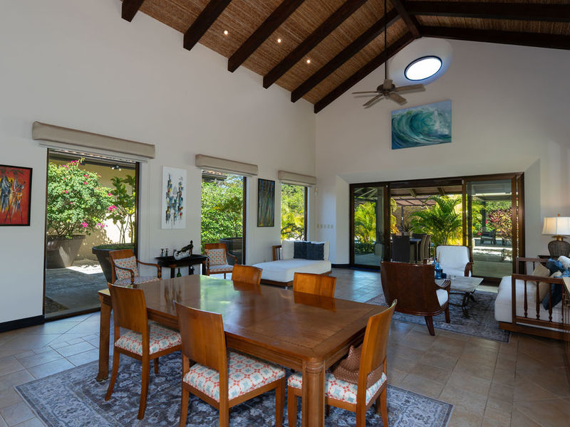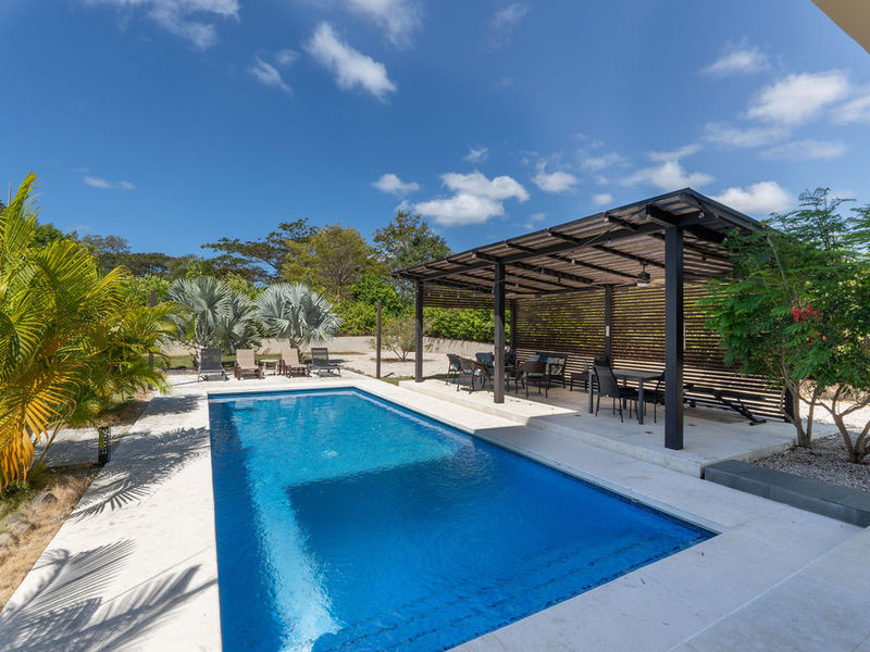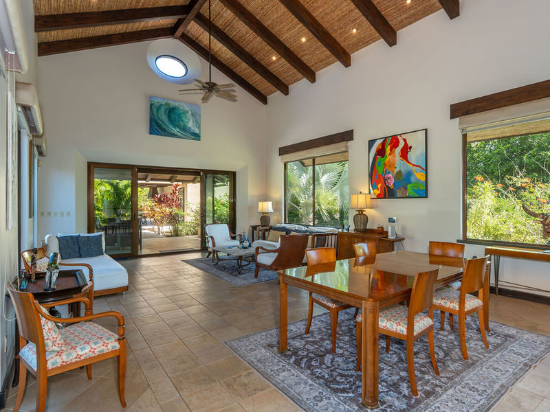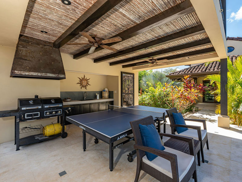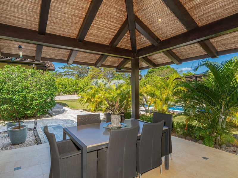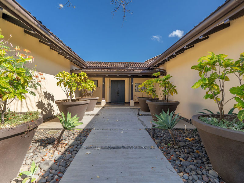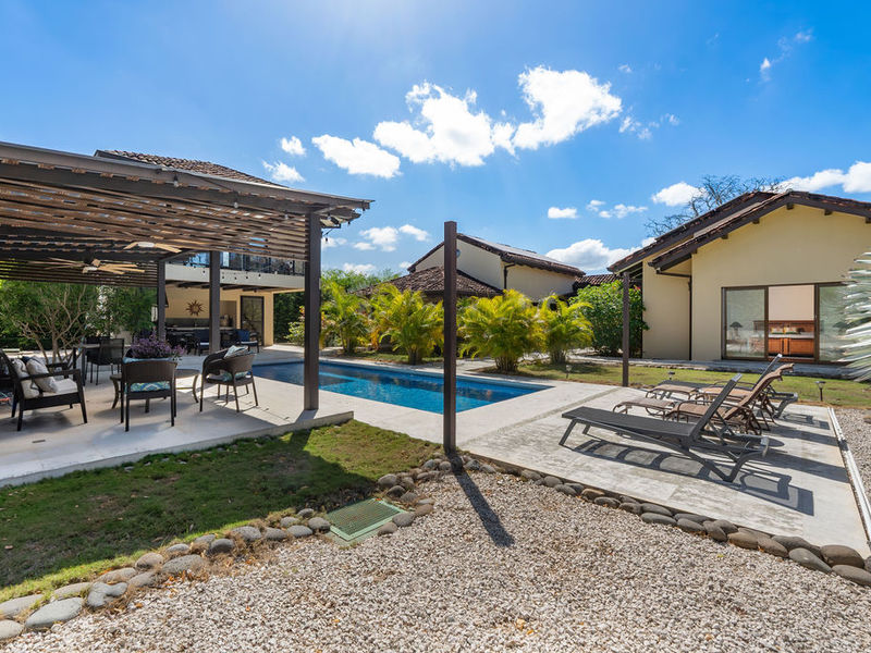 Discover the epitome of Costa Rican luxury at this stunning ranch-style home, nestled within the prestigious Las Brisas community in Hacienda Pinilla. It is perfectly designed to host up to 12 guests. This luxurious home has 5 bedrooms and 6 ½ baths, an office, TV room, solar panels that cut the electrical bill in half, a two-car spacious garage with storage closets, an electric vehicle (EV) outlet, and an extended driveway with parking space for multiple vehicles, an outdoor shower, state of the art monitored security system, and an expansive outdoor backyard space.