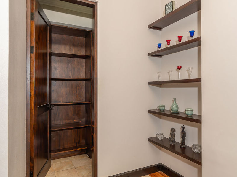 The thoughtful layout includes two wings, connected by a large, enclosed foyer with expansive windows, a half bath, access to the backyard, and a full view of the gardens and pool.