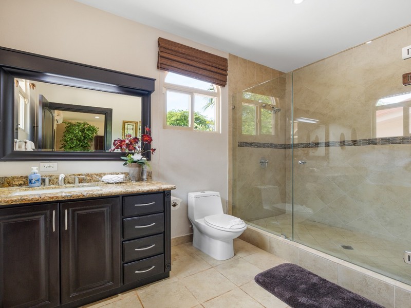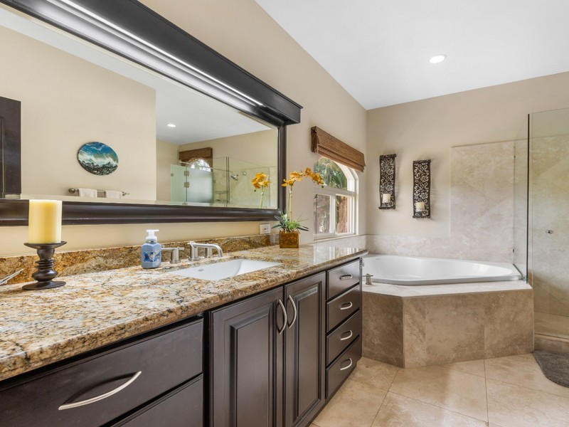 Set on a beautifully landscaped 1.35-acre lot, this turn-key residence offers privacy, grandeur, and a seamless blend of tropical charm and Mediterranean design. A long, palm-lined driveway welcomes you into a world of serenity, where mature gardens, a resort-style pool with waterfall and jacuzzi, and multiple outdoor living areas create the ultimate setting for entertaining and relaxation.
