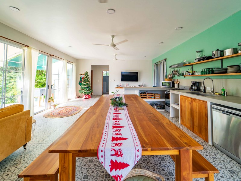 Inside, the residence opens to sweeping mountain views and a contemporary open-concept layout accented by eclectic retro-modern décor. High-quality finishes and carefully curated design elements create a space that feels both refined and welcoming—perfect for relaxed tropical living.
