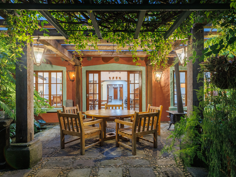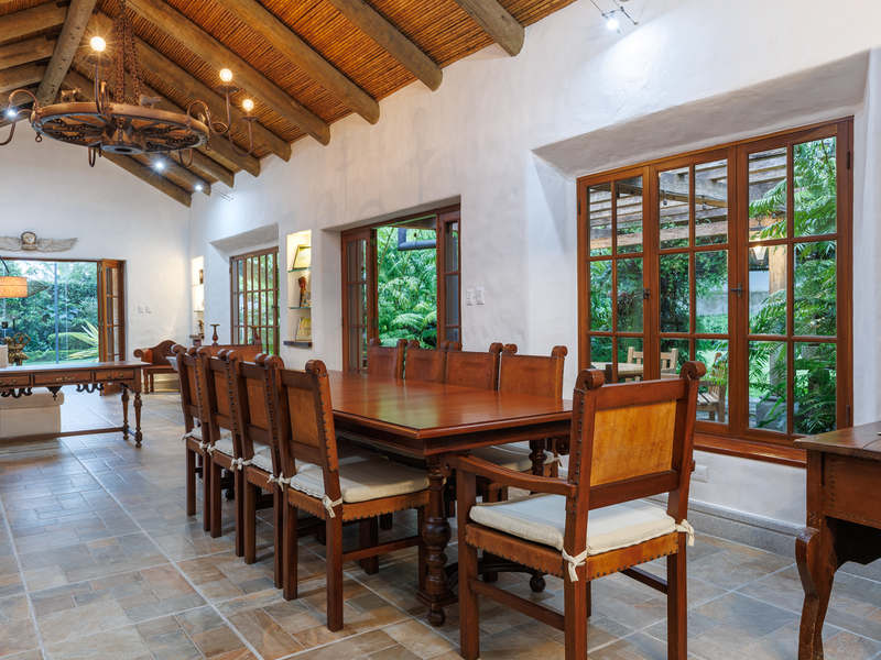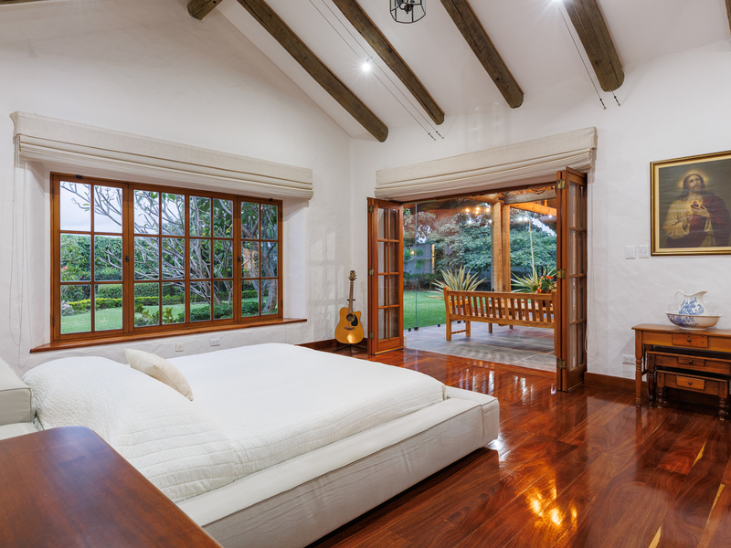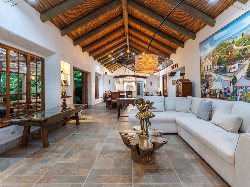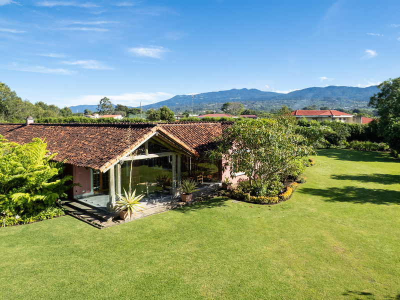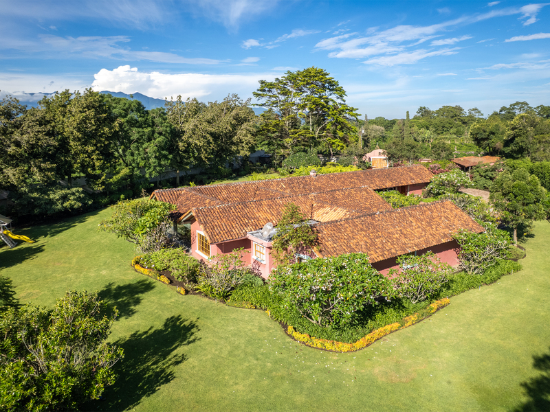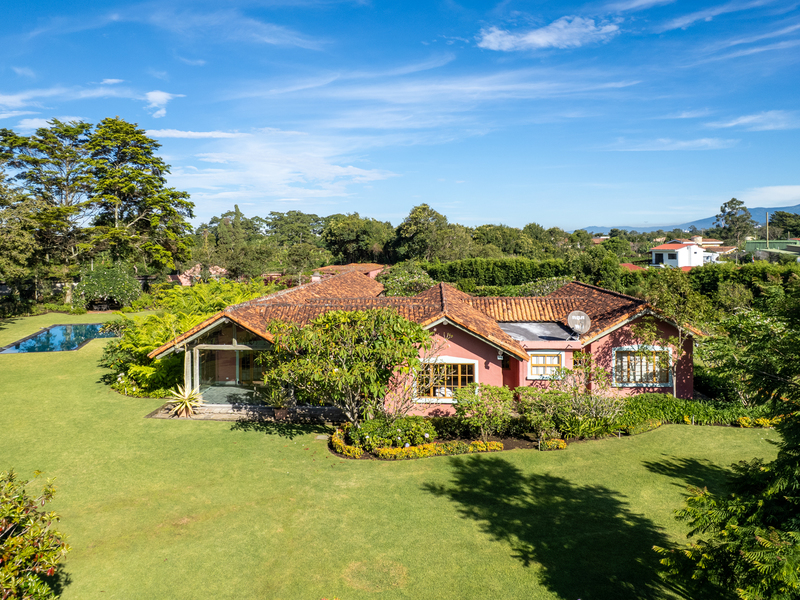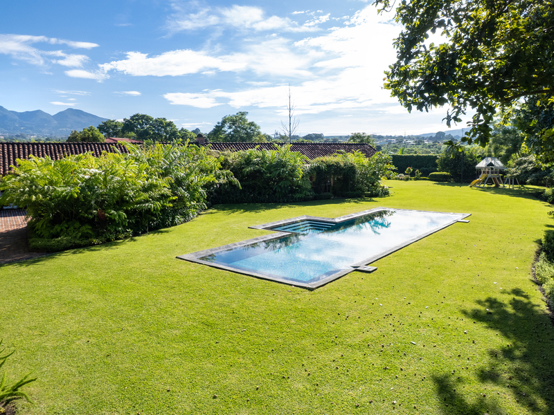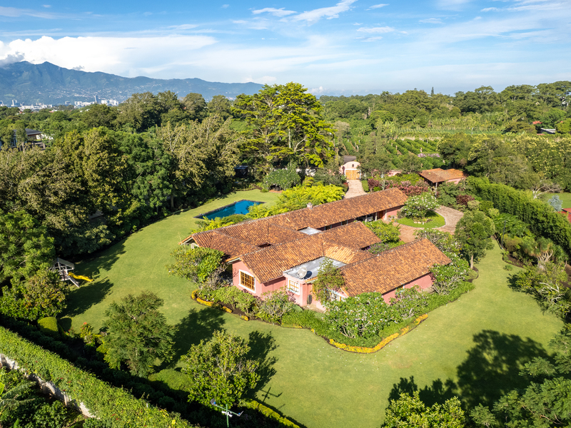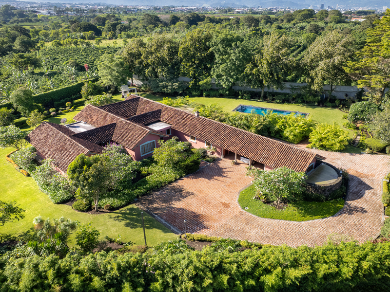 Elegant Ronald Zurcher estate in Santo Domingo, Central Valley Costa Rica. Luxury home with spectacular manicured gardens, new irrigation system, tempered salt water pool, guest house, security system, privacy and classic Hacienda design.