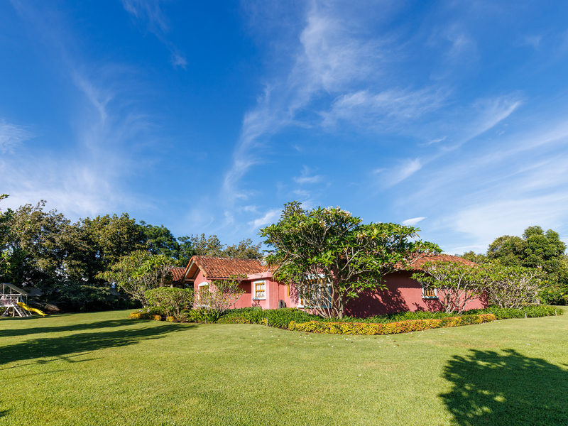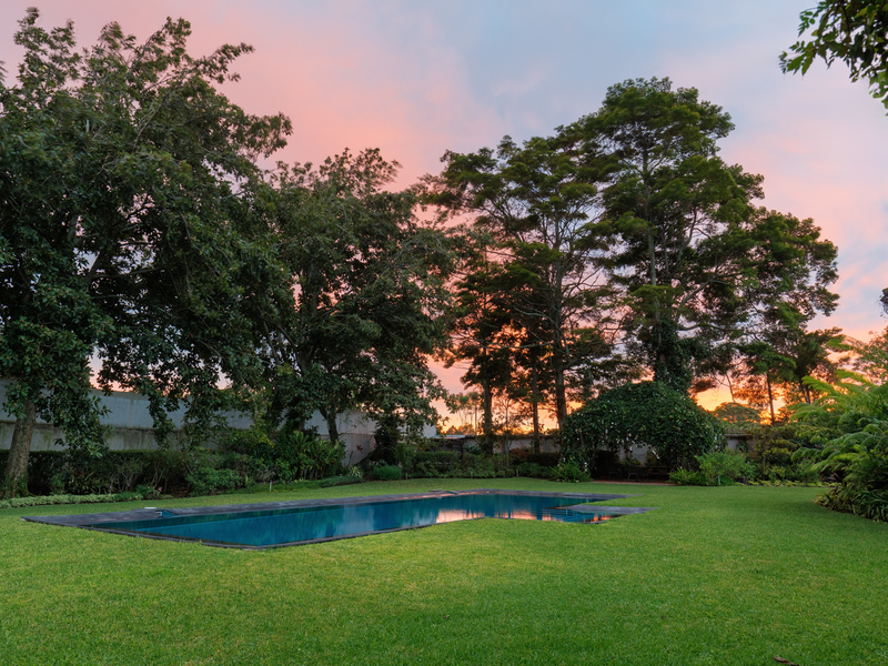 Occupying an expansive lot of 6,647 m² (1.64 acres), the estate unfolds across manicured gardens shaded by mature trees and anchored by a striking tempered salt water swimming pool that becomes the centerpiece of the outdoor living experience. Broad lawns provide space for leisure and gatherings, while landscaped areas and tree canopies frame the residence with a sense of timeless natural beauty. The grounds are enclosed by a 330-meter perimeter wall with automated gated entry and full perimeter illumination. The main house spans 511 m² (5,500 sq ft) on a single level, complemented by a 100 m² (1,075 sq ft) guest house. Together they create an environment ideal for both private living and hosting family or guests.