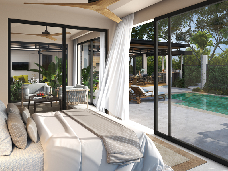 House 69: This exquisite 5-bedroom home boasts a thoughtfully crafted layout across two levels, expertly blending indoor and outdoor living for ultimate comfort and style. The open-concept kitchen and spacious living room effortlessly flow out onto a large deck, complete with a BBQ area, offering a perfect spot to relax and entertain while overlooking the sparkling pool.