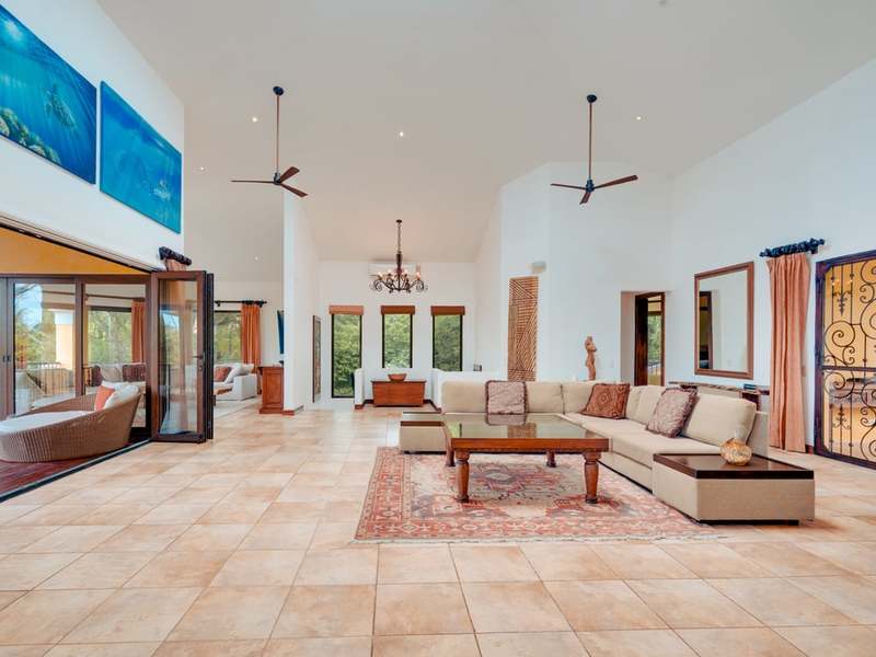Surrounded by lush tropical landscaping, the home offers complete privacy without sacrificing direct beach access. A rare three-car garage provides ample storage and convenience, making this retreat as functional as it is beautiful.