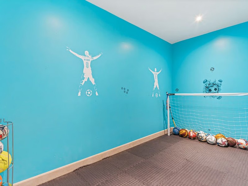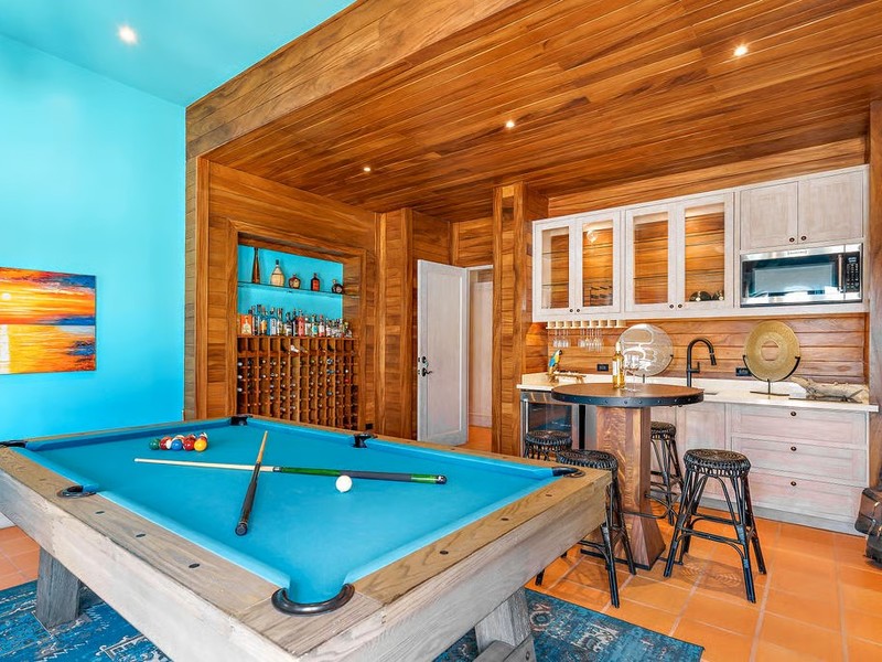 The second level offers a full guest suite, a kids’ wing, a large game room, and a wine cellar perfect for relaxed evenings or celebrations.