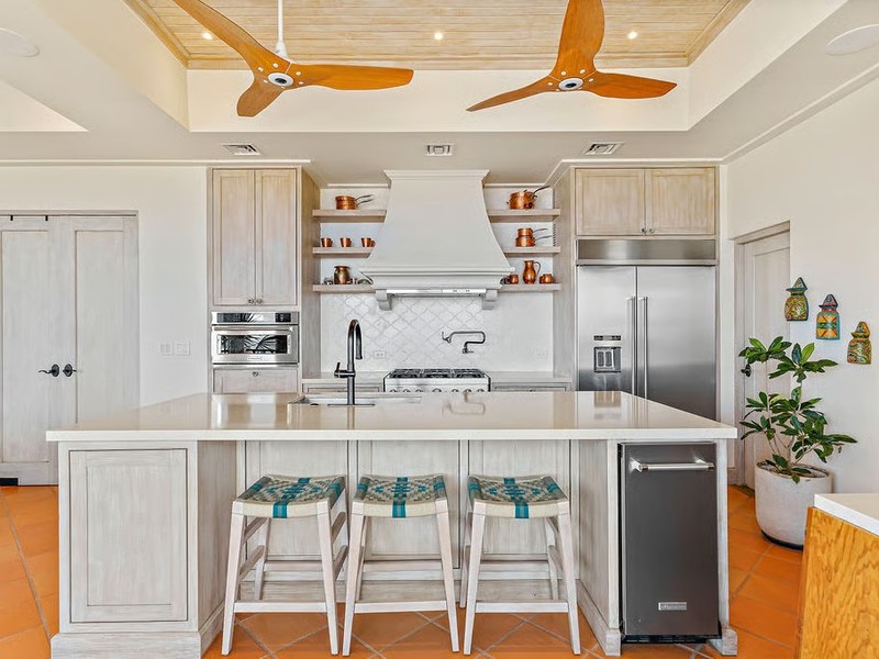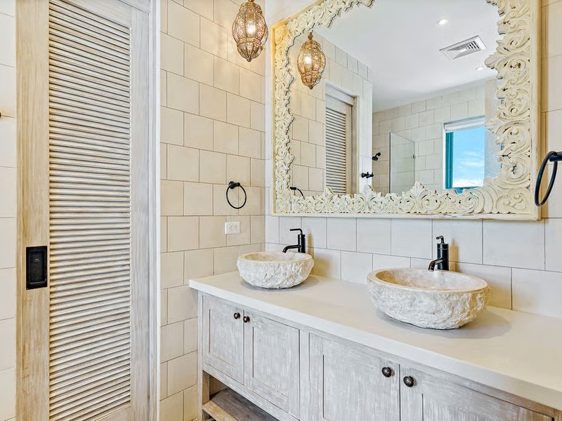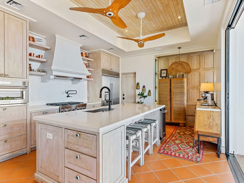 The entry level impresses with a grand double-door entrance, a private one-bedroom caretaker’s suite, and a garage accommodating up to six vehicles, plus extra storage for gear, bikes, or beach essentials.