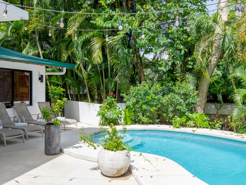 To make the most of your morning, grab a towel and your surfboard and head to the beach! It is a quick 5 minute walk to a private beach path and secure gate for GBC resident use only. Enjoy the best commute to many of Nosara's most delicious breakfast spots with a barefoot walk down the beach. Head back to the house to escape the afternoon sun with a refreshing float in the pool under the shade before heading back to the beach for a spectacular sunset. For yoga lovers, the beautiful Bodhi Tree resort is a 12 minute walk down the road or 3 minutes by golf cart. To cap off a fun-filled day of Costa Rican adventures, spend your evening on the patio under the bistro lights or stargazing at the magical night sky. With the gentle sound of palm trees in the breeze, you can relax and sleep well knowing that Guiones Beach Club security is on duty 24/7. Also, we have a sound system in the house.