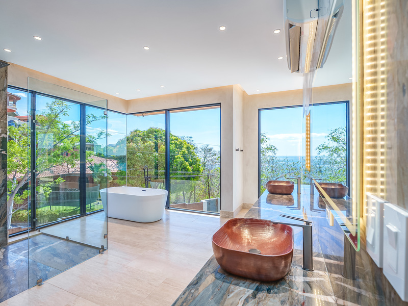 This is an ultra-exclusive location—El Palacete is only 200 meters from the ocean on Flamingo's prestigious south ridge. The property has an irreplaceable vantage point that offers unique ocean views, including the surf rolling onto the sand below, as well as a scenic look at the new Flamingo Marina, which has transformed the area into an international hotspot.