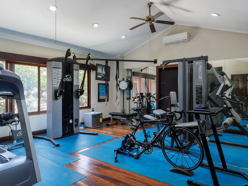 The primary suite offers privacy and serenity, with its own sitting area, large walk-in closet, and spa-inspired bathroom. An adjacent home office, custom-built with extensive shelving and natural light, offers an inspiring workspace suited to modern lifestyles. Next to this, a well-equipped gym provides a bright and airy space ideal for wellness and daily exercise, allowing residents to maintain a healthy lifestyle in the comfort of their own home.