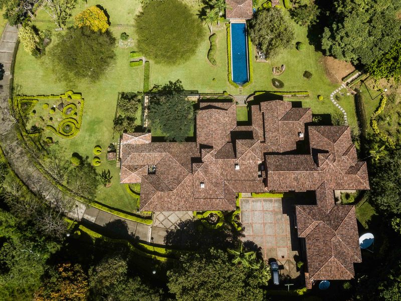Tucked away in the hills of Santa Ana, Villa Artesana is a distinguished hacienda-style residence offering the perfect balance of refined architecture, privacy, and convenience. Set on an expansive 19,617 m² lot in an exclusive gated community, this estate was designed for those who value handcrafted detail, lush natural surroundings, and seamless indoor-outdoor living.