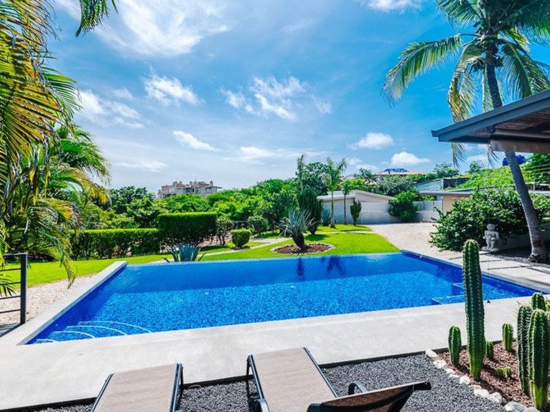 Experience the best of coastal living and income potential with this exceptional ocean-view estate, just a short walk from Tamarindo’s world renowned beach, vibrant dining, and lively local culture. The beautifully remodeled main residence (2020) features four spacious bedrooms, an open concept kitchen with granite countertops and stainless steel appliances, and a seamless indoor-outdoor flow. Relax on the expansive covered terrace with outdoor dining, hammocks, a grill station, and an infinity-edge pool that perfectly frames the panoramic ocean views. The luxurious master suite includes a private balcony for sunset views, an ensuite bath with dual vanities, and elegant finishes throughout.