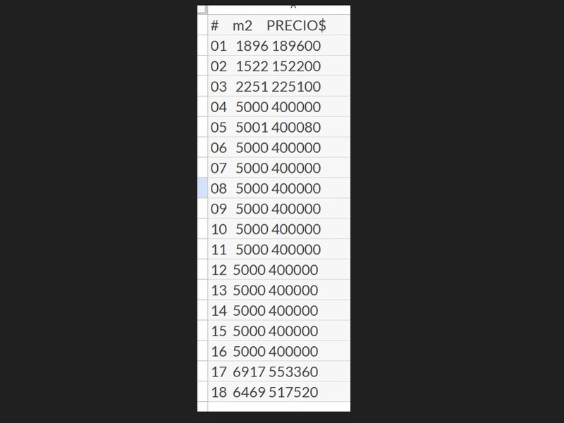 Below is the list of all the lots within this project, with corresponding sizes and prices: